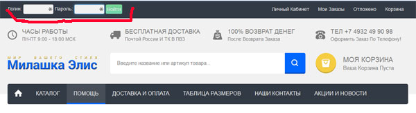Самый простой способ авторизации - это заполнить форму в верхнем меню шапки сайта.